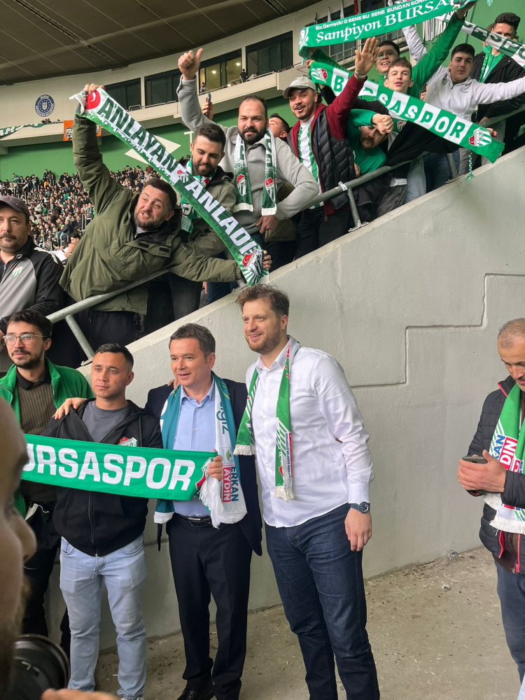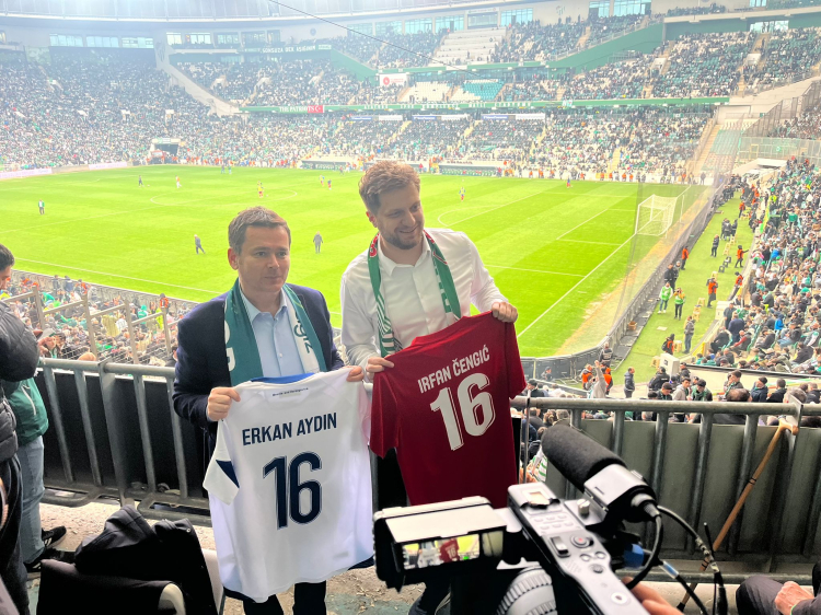 Bursa Osmangazi Belediye Başkanı Erkan Aydın, Bursaspor-Mardinspor maçını Saraybosna Stari Grad Belediye Başkanı Irfan Čengić ile birlikte izledi.
